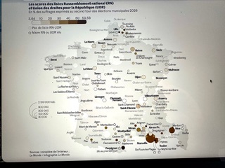 Gleichwohl konnte der RN nicht die hohen Werte erreichen wie bei den Parlamentswahlen 2024, wo er mit 29% der Stimmen bei einer Wahlbeteiligung von 66,7% zur stärksten Oppositionspartei in der Assemblée Nationale wurde. Offensichtlich ist dies darauf zurückzuführen, dass gemäß dem Mehrheitswahlrecht in zwei Wahlgängen im zweiten entscheidenden Wahlgang dem RN nahestehende Listen aufrechterhalten wurden, statt sich nach üblichem Verfahren zur Mehrheitsbildung mit einer im ersten Wahlgang aussichtsreichen Liste zu verbinden. Auf kommunaler Ebene werden solche Listenverbindungen mit einer rechtsextremen Partei deutlich weniger eingegangen, da viele bürgerliche Kandidaten/innen aufgrund ihres örtlichen Bekanntheitsgrades sich nicht die Blöße geben wollen, mit einer rechtsradikalen und rassistischen Partei in Verbindung gebracht zu werden.