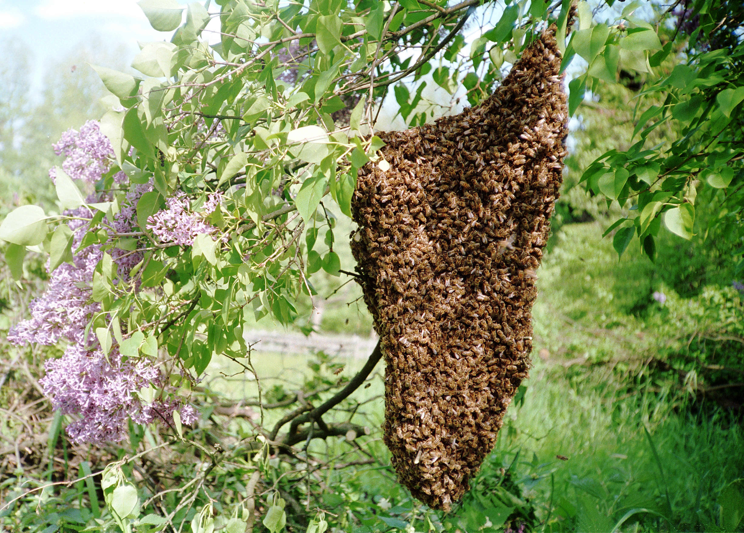 Ein Bienenschwarm im Flieder. Foto: Michael Weiler.